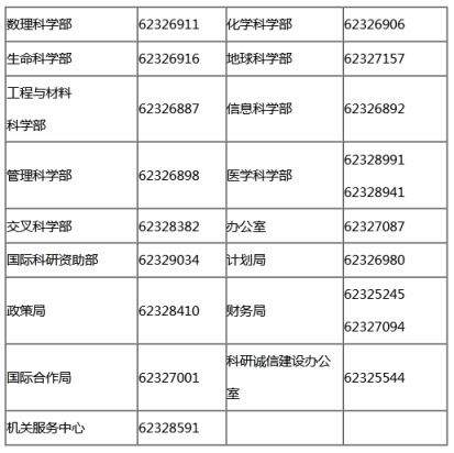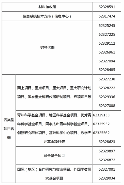 国家自科基金委各类事项咨询电话: