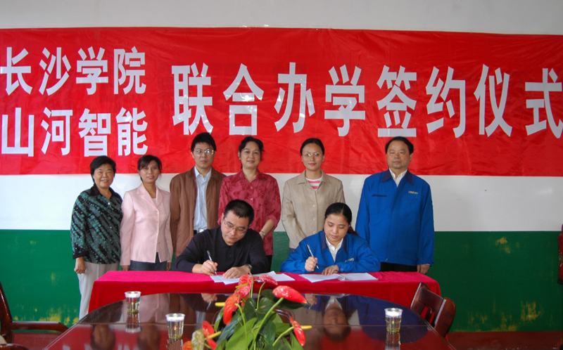 校领导李云龙代表学院与山河智能机械股份有限公司签订了合作办学协议书,机电工程系主任从山河智能人力资源部主任手中接过了“山河班”的牌匾,招生就业处、机电工程系和山河智能人力资源部的相关负责人出席了签约仪式。这是继我院与中联重科合作之后的又一次校企联合。
