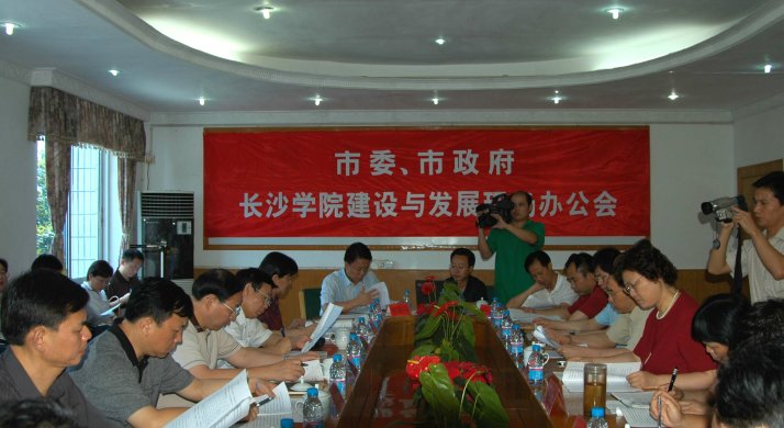 6月20日下午,省委常委、市委书记梅克保、市委副书记、市长谭仲池率领市委办公厅、市政府办公厅、市发改委、市财政局、市人事局、市审计局、市交通局、市编办、市旅游局、市拆迁办、开福区政府的负责人来到K8体育·(中国)体育官方网站,就我院加快建设和发展、迎接2008年至2010年教育部本科教学工作合格评估现场办公。会议由曹亚副市长主持,市委副书记吴志雄出席会议,我院校领导李咏芳、刘耘、钟惠英、胡名健、邓球柏和相关部门的负责人以及省市新闻媒体记者也出席了现场办公会。