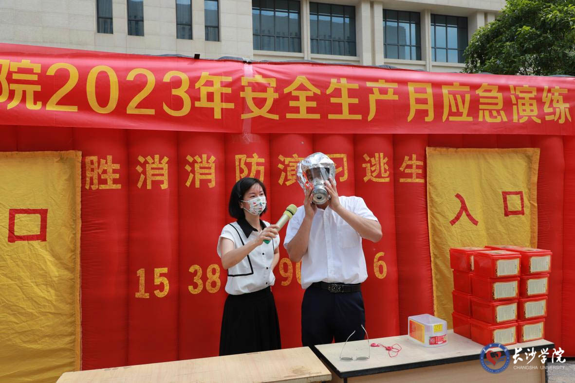 随后,湖南省消防安全服务中心教官彭建龙为在场师生讲授了防毒烟雾面罩、灭火器、消防水带的正确使用与操作流程,演示了火灾模拟逃生舱的使用。