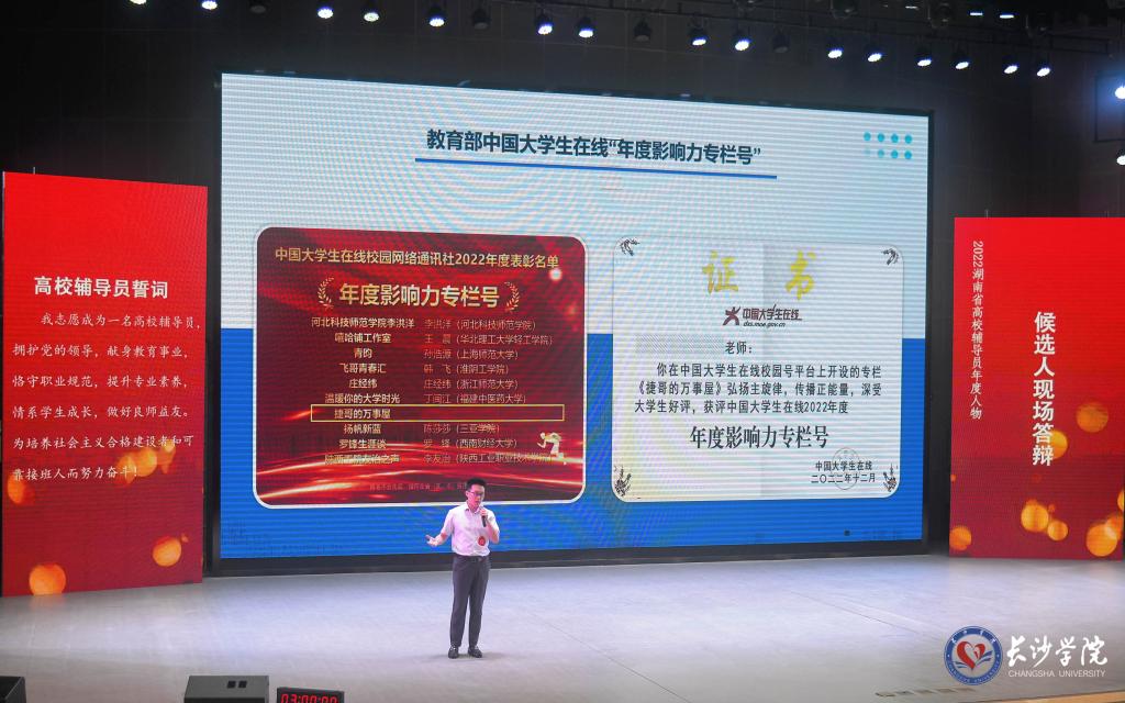 创建“捷哥的万事屋”网络思政品牌,撰写独立原创网文累计10万字;带领学生团队累计走访了岳阳、郴州、永州、湘潭等338个省市县派驻村帮扶工作队,上好乡村振兴中的大思政课;荣获国家级荣誉4项,省市级荣誉11项……6月14日,由省委教育工委、省教育厅举办的“2022湖南省高校辅导员年度人物”候选人现场答辩在邵阳学院举行。K8体育·(中国)体育官方网站经济与管理学院辅导员谭敏捷以现场答辩第三名的优异成绩获评“2022湖南省高校辅导员年度人物”。