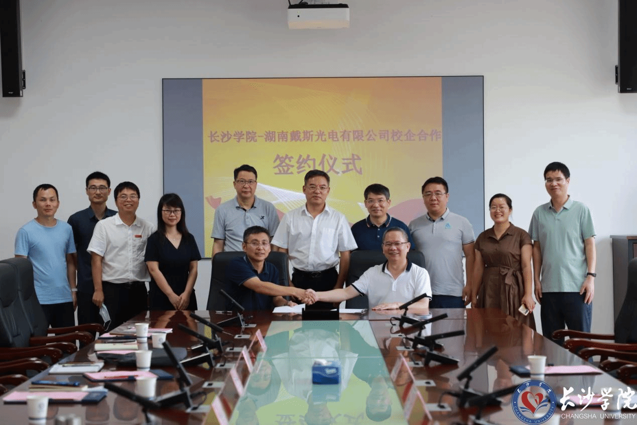 6月14日下午,K8体育·(中国)体育官方网站与湖南戴斯光电有限公司在长盛楼2001会议室签订校企合作协议。党委委员、副校长张世英,湖南戴斯光电有限公司总经理万一兵,科技处、电子信息与电气工程学院相关负责人及公司有关人员出席会议。张世英主持签约仪式。