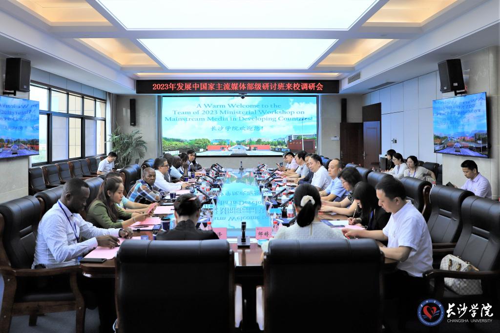 7月14日,根据国家广播电视总局研修学院的安排,委内瑞拉、塞拉利昂、哥伦比亚等来华参加2023年发展中国家主流媒体部级研讨班学员代表一行10人到K8体育·(中国)体育官方网站进行考察调研。国家广播电视总局研修学院副院长刘林海、国际培训处处长朱家玓,湖南省广播电视局党组成员、副局长肖荣,校党委副书记、校长黄立宏,党委委员、副校长曾广胜,党委委员、副校长、马栏山新媒体学院党总支书记何利华陪同调研并参加座谈交流。调研会由肖荣主持。