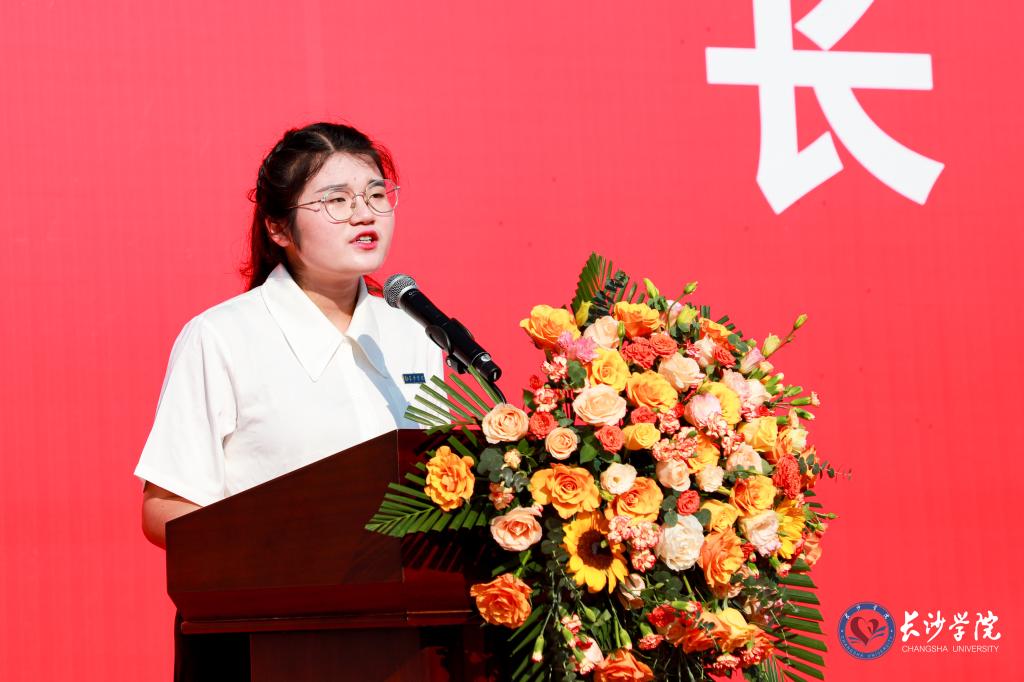 “中国大学生自强之星奖学金”荣誉称号获得者、机电工程学院2020级汽车工程02班肖慧代表全体在校生表达了对2023级新生的欢迎。她结合自己的在校经历,鼓励新生把握青春,勇于挑战,努力成长为既有才华又有品德,能够为社会和他人作出贡献的人。