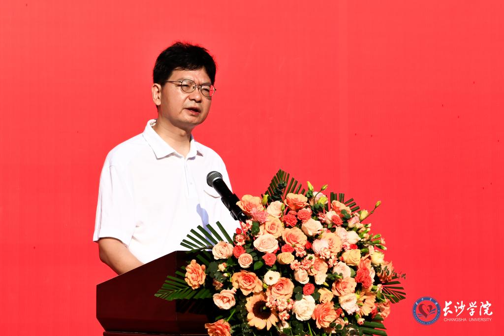 “水流万里归大海,树高千尺不忘根。”马栏山视频文创园党工委副书记、管委会主任易鹰作为校友代表在讲话中回忆了自己与母校之间的深情厚谊,鼓励同学们感恩相遇,善待所遇;力学笃行,勤恒精进;创造价值,奉献社会。他希望同学们能不负韶华、不负时代,胸怀“国之大者”,服务“省之大计”,用奋斗的青春助力马栏山打造具有全球影响力的数字视频产业链基地和媒体融合新地标!