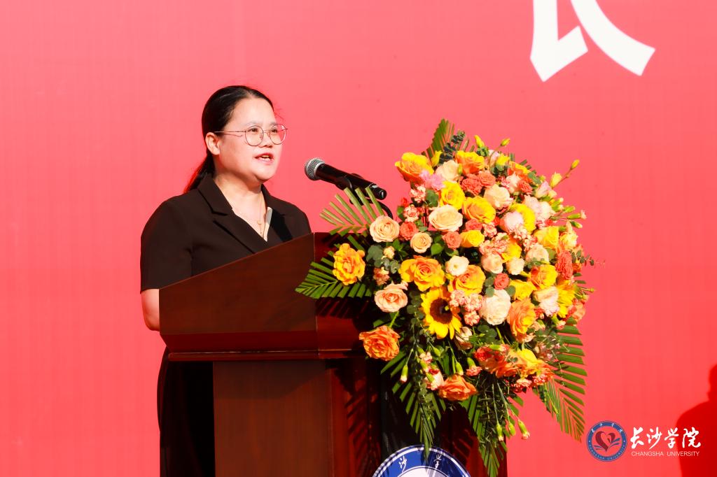 教师代表、经济与管理学院杨芳教授满怀深情地回顾了自己从教期间见证的一代代长大人砥砺前行的逐梦故事,勉励新生要“心中有梦,眼里有光,脚下有路”,心怀远大梦想,保持阳光心态,牢记“力学笃行”的校训,执着追求自己的理想。