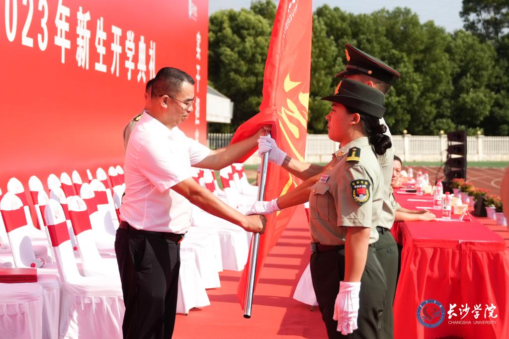 开学典礼后,随即举行了2023级新生军训动员大会。校武装部部长、军训团团长李权宣读了《关于对2023级新生军训教导员、教员、指导员任命的决定》,副校长何利华作军训动员讲话并为军训团、营授旗。