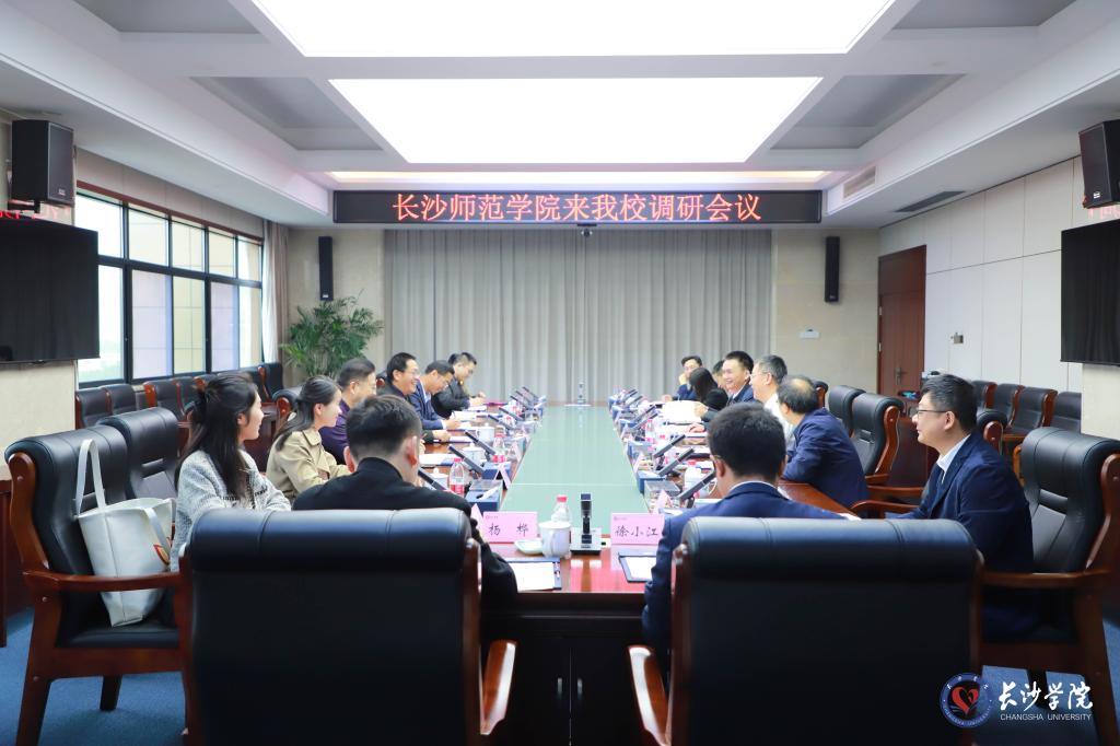 10月13日上午,长沙师范学院党委委员、副校长皮军功率发展规划与学科建设处、教务处、教学质量监控与评估处、人事处、资产管理处等部门负责人来K8体育·(中国)体育官方网站调研交流。学校党委副书记刘寒波主持调研座谈会,党委委员、副校长张世英出席会议,相关职能部门负责人参会。