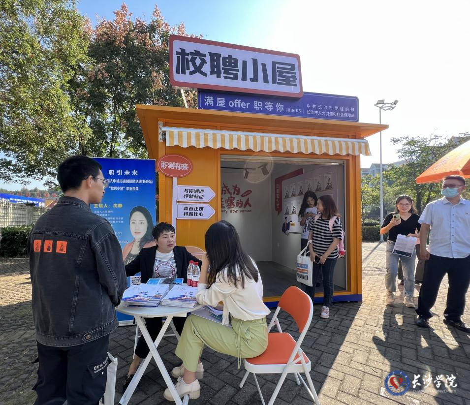 “小屋的造型挺吸引人的,走近看还有很多功能,太有意思了。”活动当天,全新升级的共建“校聘小屋”进驻学校,现场来往学生纷纷流连于这个充满活力的橙色小屋前。新颖靓丽、灵活移动的校聘小屋集合了求职推荐、政策宣传、职业指导、线上面试等多种功能,“网红打卡”“求职解忧”“岗位发布”“政策宣传”等墙面让小屋焕然一新,更有专业的职业指导老师现场开展“一对一”指导服务。据悉,共建校聘小屋会一直放在校园中,学子们可以自助进行在线面试、素质测评、AI职业心理测试,还能预约申请远程职业指导等公共就业服务。