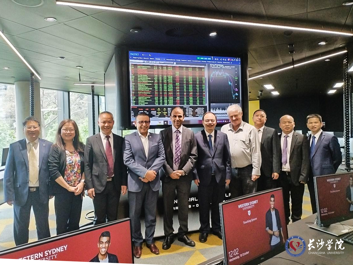 10月18日,代表团一行访问了澳大利亚西悉尼大学,与该校国际交流与合作工作主管、商学院院长Amir Mahmood教授等进行了深度交流。双方聚焦创新、合作、创造具有世界影响力的成果等主题,就进一步开拓合作空间、开展务实合作进行了深入洽谈,在科学研究、教师交流、学生互换、“2+2”人才联合培养项目、“3+1+2”硕士培养项目等领域开展务实合作达成了一致意见。代表团一行还在Amir Mahmood教授的陪同下,参观了西悉尼大学商学院的教学楼、金融实验室等,了解其课程教学、教学管理和实践教学开展情况。