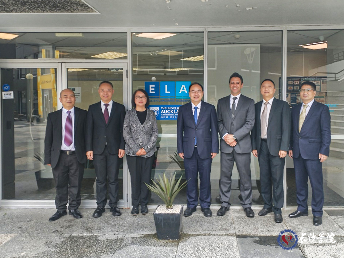 (代表团成员与奥克兰大学语言学院院长Paul O’Farrell博士等合影)