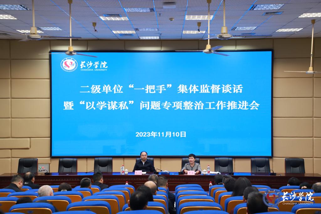 11月10日下午,学校二级单位“一把手”集体监督谈话暨“以学谋私”问题专项整治工作推进会在致远楼学术报告厅举行,党委书记杨小云出席并讲话,强调在决胜“升硕”的关键期,每位教职工都要思想上“绷紧弦”,把责任“扛在肩”,行动上“拉满弓”,要以更加坚定的态度、更加有力的措施、更加扎实的工作,深入推进党风廉政建设,为决胜“升硕”提供坚强纪律保障。会议由纪委书记丁文主持。
