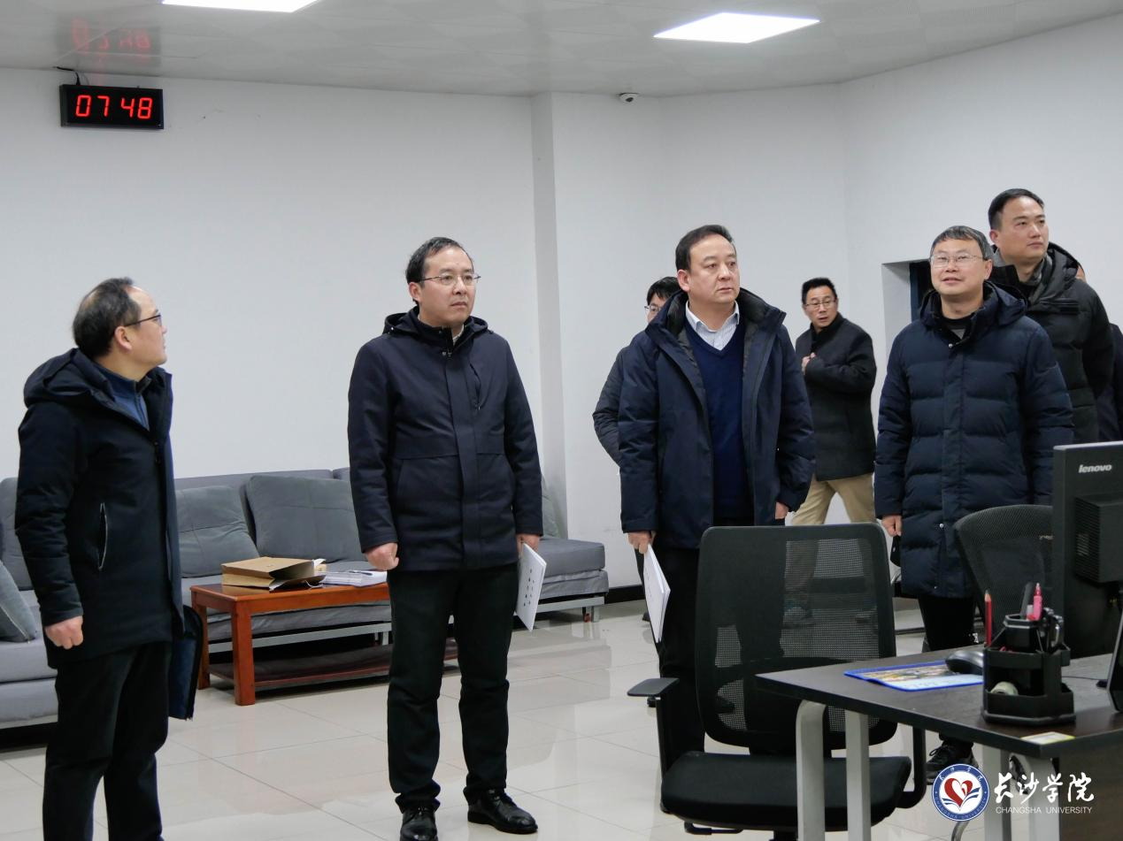为确保新学期教学工作稳步推进,进一步规范课堂教学管理,加强教学质量监控,了解教学运行情况,2月26日清早,校长陈赤平,副校长曾广胜带队通过监控中心了解涵虚楼整体课堂情况并深入一线,实地走访查看师生上课状态、教学秩序及教学保障情况。学工处、教务处、质评办等部门负责人,各二级学院党政领导、教研室主任、实验室主任及学生辅导员分别深入课堂进行巡查。