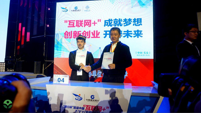 长沙理工大学选送的“切糕王子”创业项目负责人阿迪力代表全国大赛获奖项目在闭幕式上与风投基金签订投资协议。