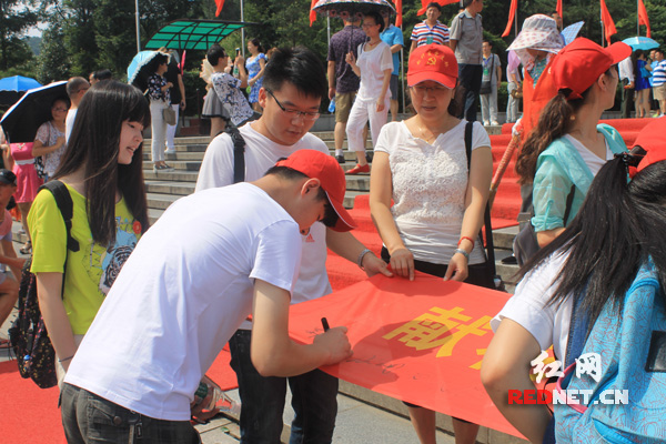 在韶山,五十多名新发展学生党员拜谒了毛主席铜像,在活动横幅上签下自己的名字寄托爱国情感;在毛主席纪念馆全体党员重温入党誓词,牢记党员责任义务;在毛主席故居、南岸私塾和博物馆,学生党员们仔细聆听了讲解员的讲解,共同回望那段可歌可泣、气壮山河的烽火岁月。